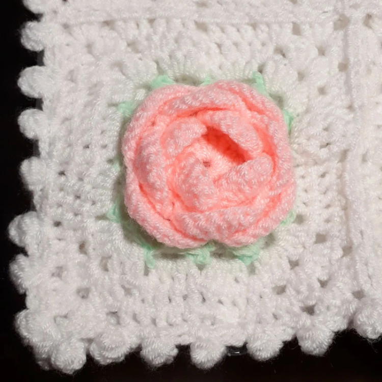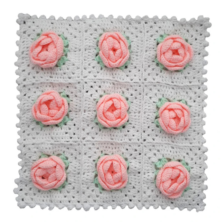 کاور کوسن بافتنی با طرح گل برجسته و ابعاد 34*34 سانتی متر